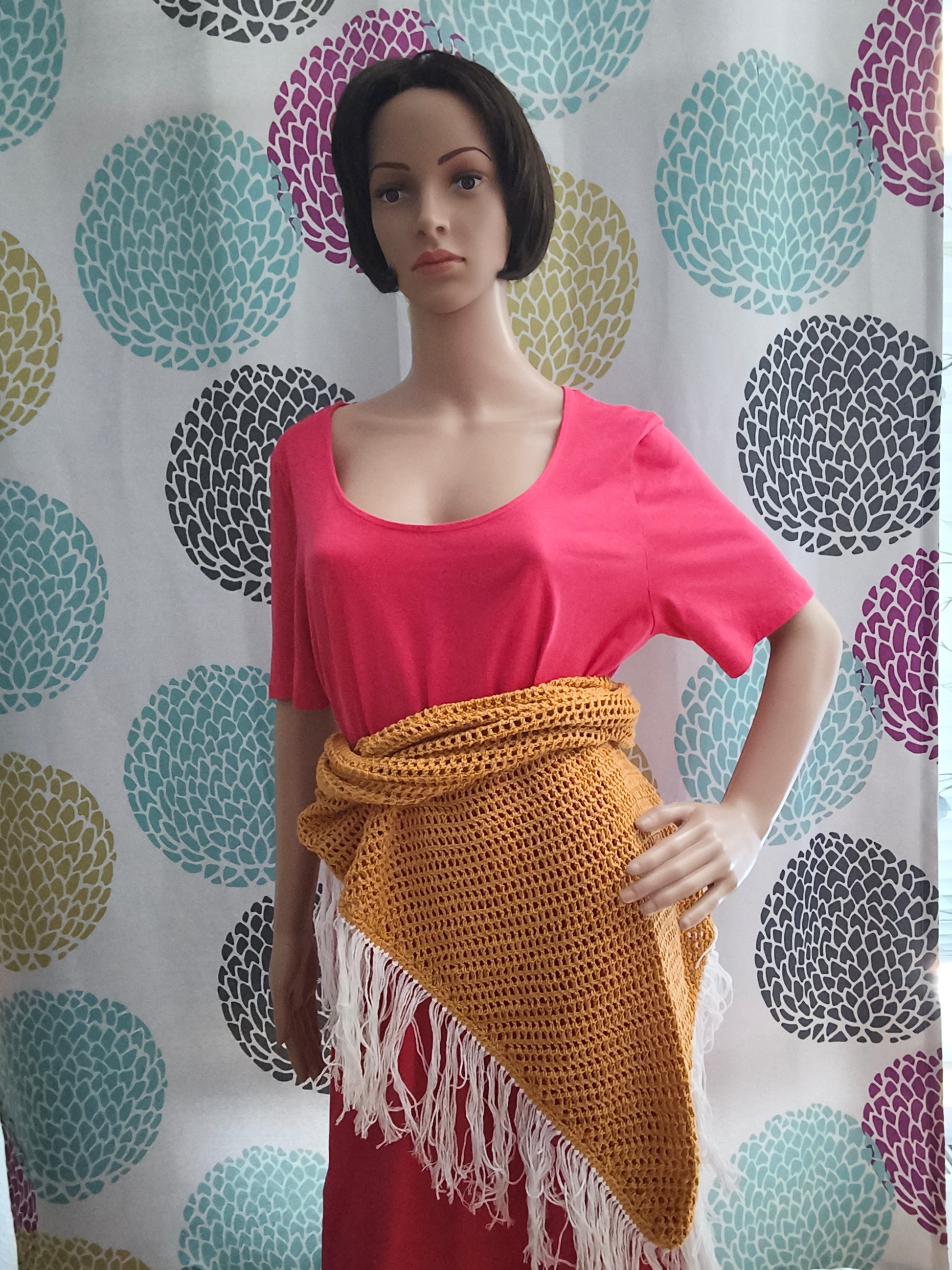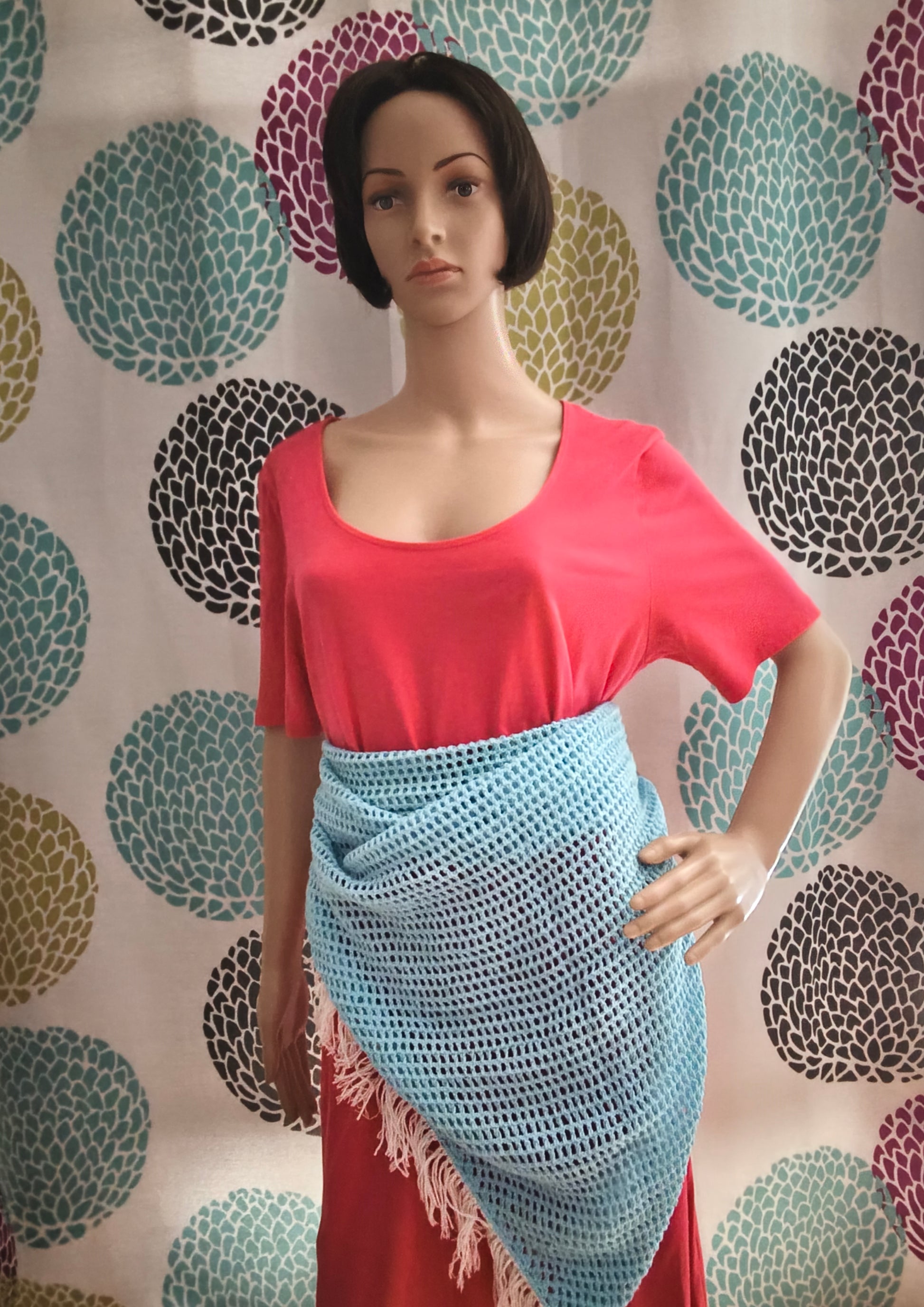 "Summerday" ist ein leichter, luftiger “3 in 1” Schal, der als Schultertuch, Schal oder Hüfttuch fungieren kann